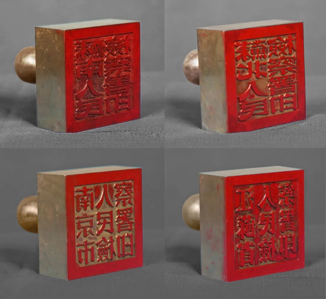 这四枚印章分别是苏南人民检察署、苏北人民检察署、南京市人民检察署和江苏省人民检察署印章,均为方形圆柄,印面边长6厘米,为制作精良,用黄铜铸造,印文为阳文繁体老宋。