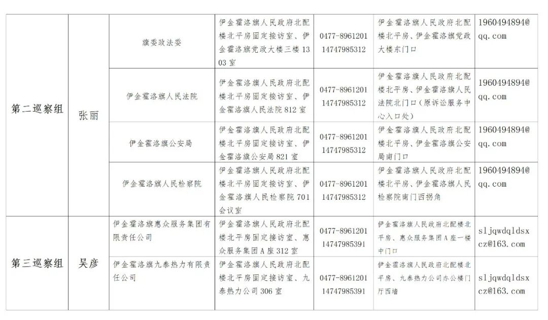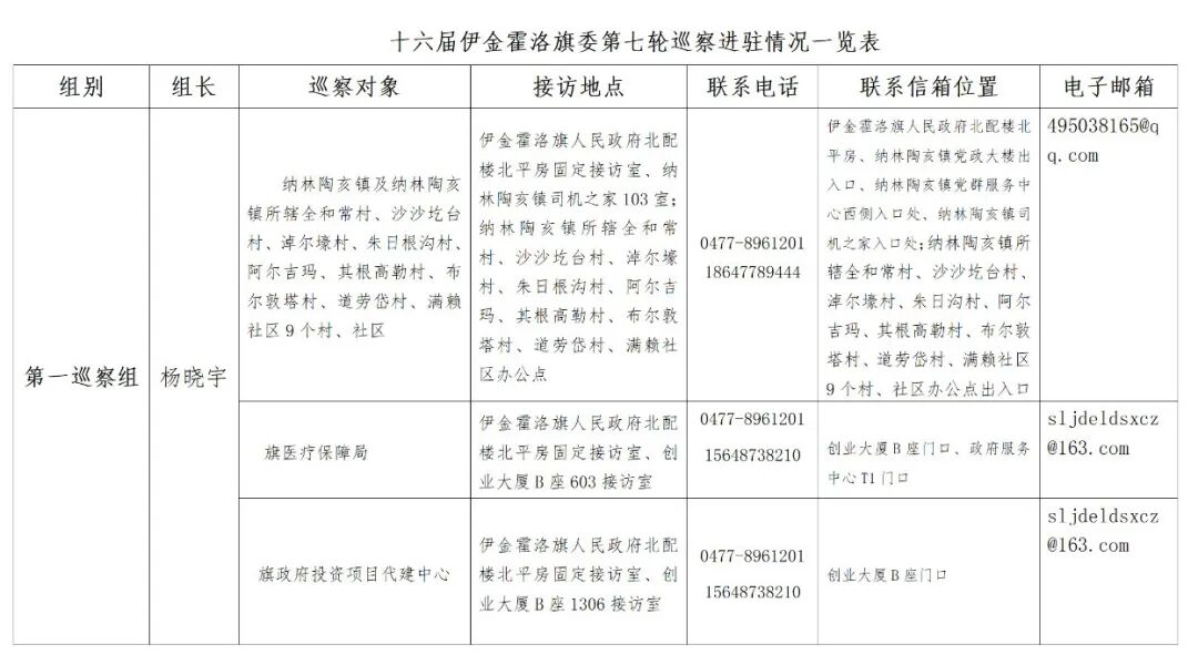 第七轮巡察进驻情况一览表