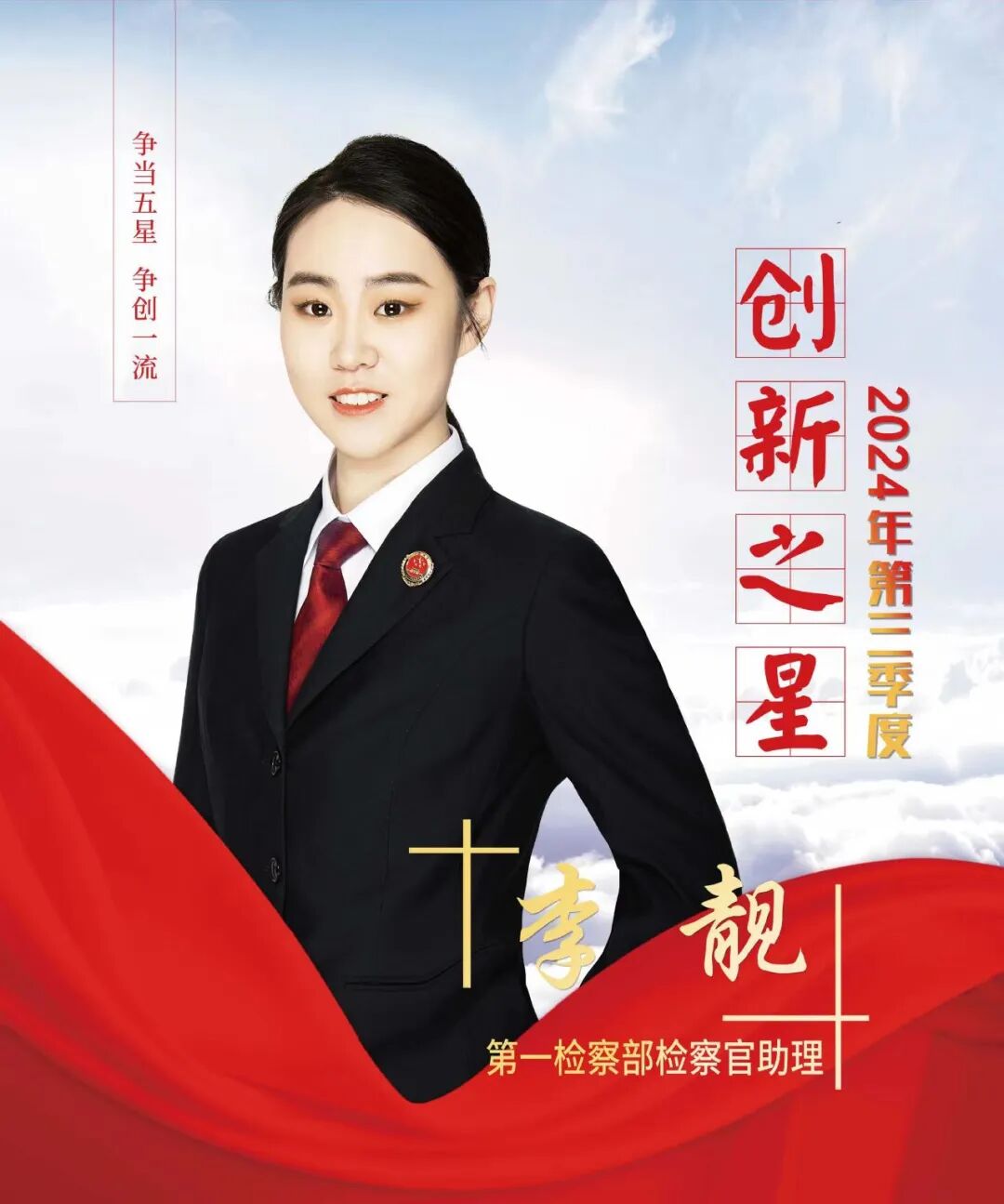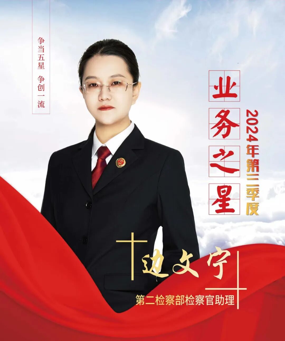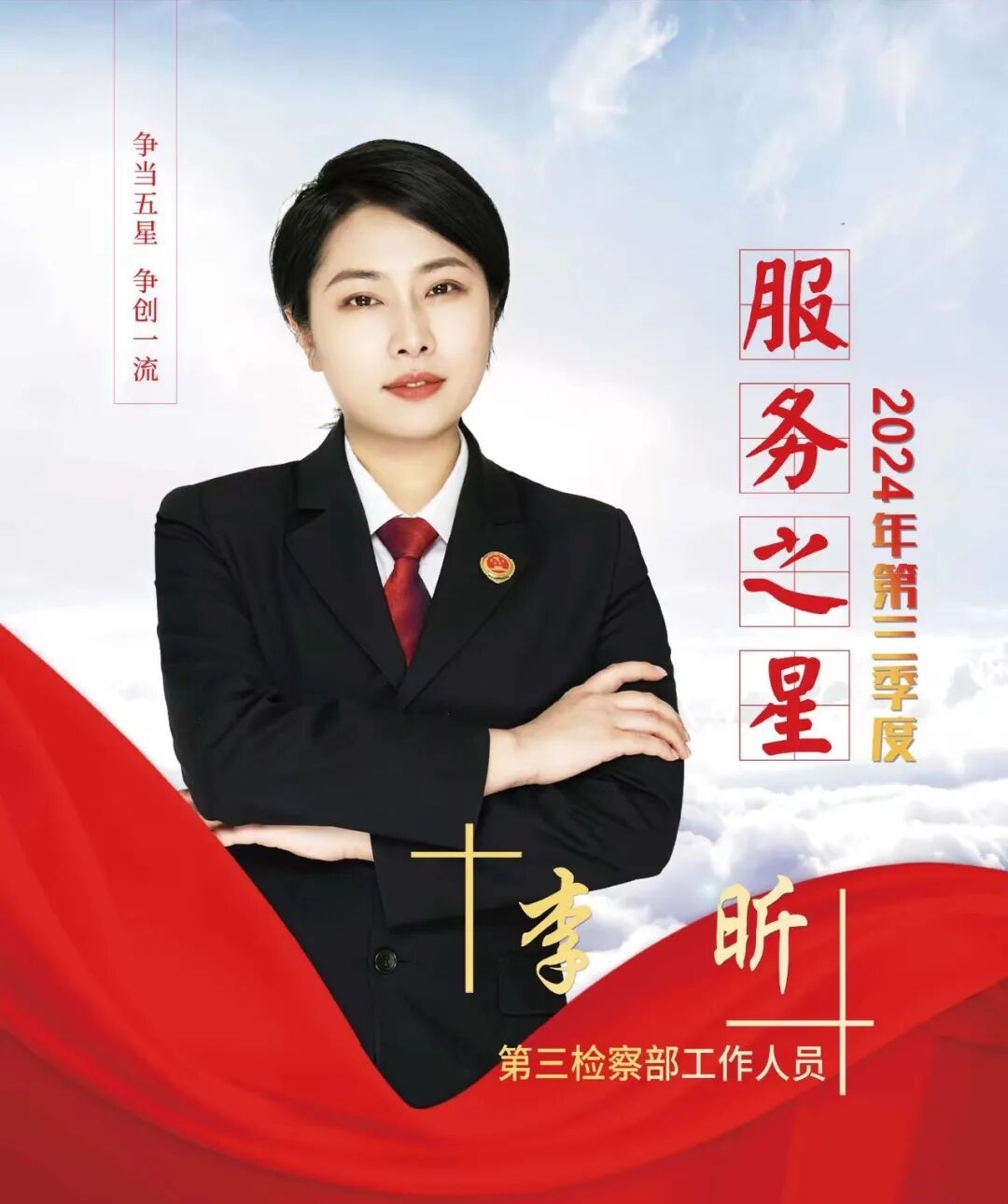 近日,根据第三季度检察人员办案质效、创新创优、检务保障、爱岗敬业、学习进步等综合因素,评选出本季度“五星”检察人员,他们是: